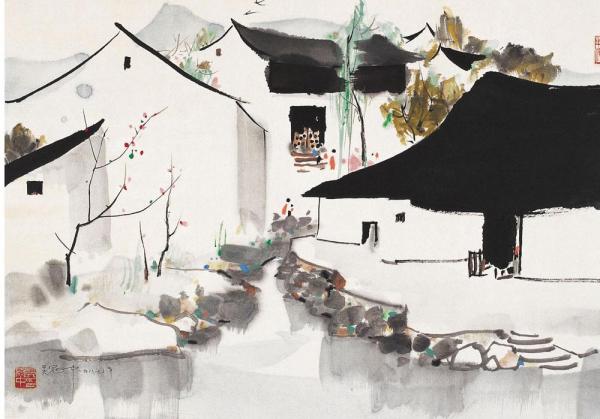 在满足了基本需求后,孟浩凡才开始考虑,如何为这座古镇保留传统江南民居的神韵,又体现出现代学的美感和创意。他想到了画家吴冠中。孟浩凡说,比起具象的元素,他更多考虑的是保留“气质”。“比如说你看这色调,色调是白墙绿瓦,中间有一些灰色系的这种砖,都是老色调的基底给我们的感觉。这种压顶的线条,像吴冠中的画,都是很抽象的嘛。画江南民居,他画出来很抽象的艺术画,没有具象的符号,但是你一看这个东西它就是江南的,因为屋顶的这种曲线、线条,勾勒出了江南的这种俊秀。”