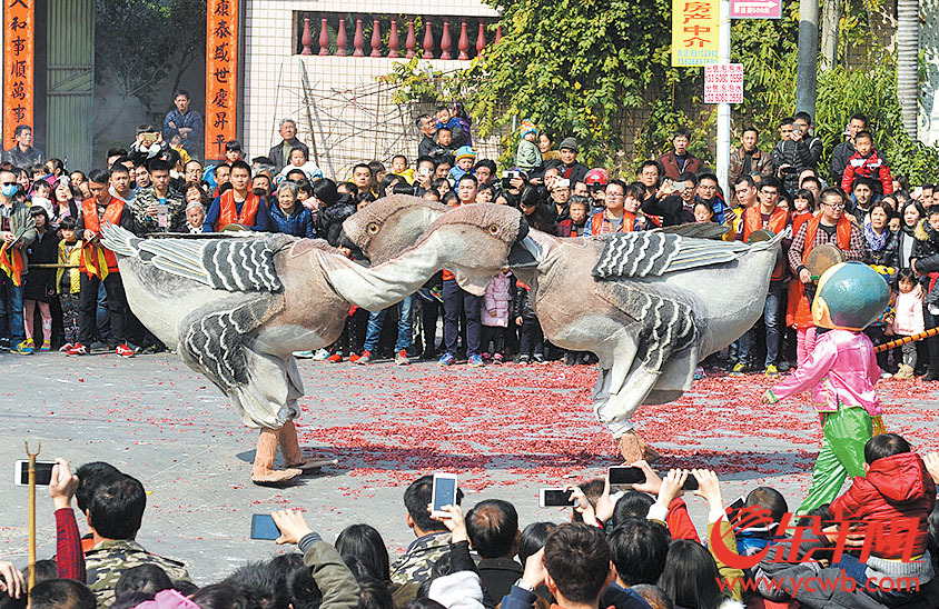 元宵节,澄海莲下镇陈厝洲乡一年一度的游神活动。巡游队伍最有代表性的就是澄海“双咬鹅舞”,始创于上世纪五十年代初,由于澄海盛产狮头鹅,有“鹅乡”之称。故澄海人创制了狮头鹅艺术造型。类似的例子还有潮汕地区的蜈蚣舞、蚌壳舞等,只有几十年的历史林桂炎 摄