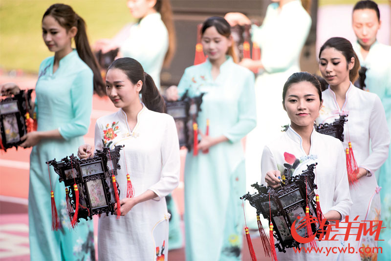 昨日广府庙会的一景。这种打扮与所持宫灯式样,明显是现代导演对传统的发展与模仿,但也可能形成新的民俗 记者 周巍 摄