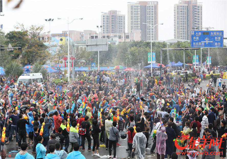 金羊网讯 记者汤铭明摄影报道:2017年2月27日,农历二月初二,“龙抬头”的日子,东莞东坑镇迎来了一个盛大而独特的地方节日——二月初二“卖身节”。每年这个时候,东坑的居民都会举行隆重的欢庆活动,当中“射水狂欢”就是重头戏!街坊们走上街头,尽情地互相泼水,祝福的水花飞溅,场面热闹壮观。