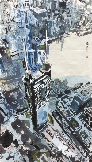 《地王大厦》,196cm×73cm,宣纸,2015年