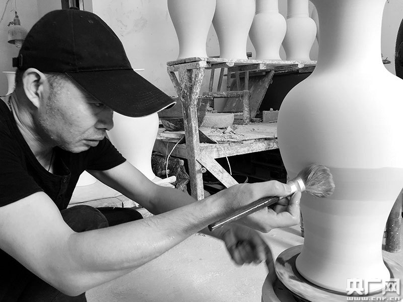 王晓峰:每道工序都不能大意,还要有点运气,突然间天上飘来一朵云,气里或者是哪里落了一点铁质在上面,你没办法。所以我们景德镇传统艺人里边有一句老话,泥塑火烧的东西谁能保得到,万里无云是很难的事情。但是我个人觉得可能我们就得做万里无云的东西。
