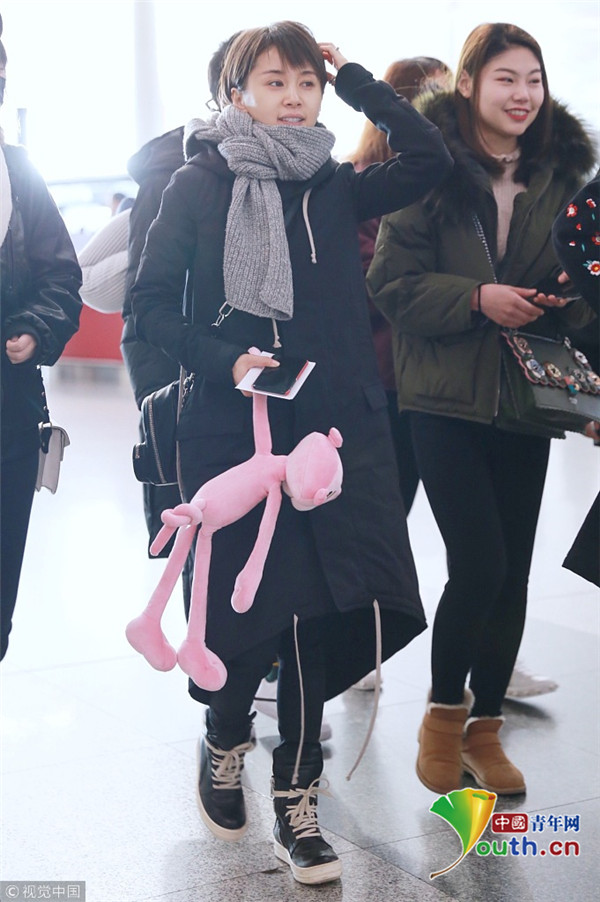 王子文素颜现身羞涩挠头 手提“粉红豹”童心未泯