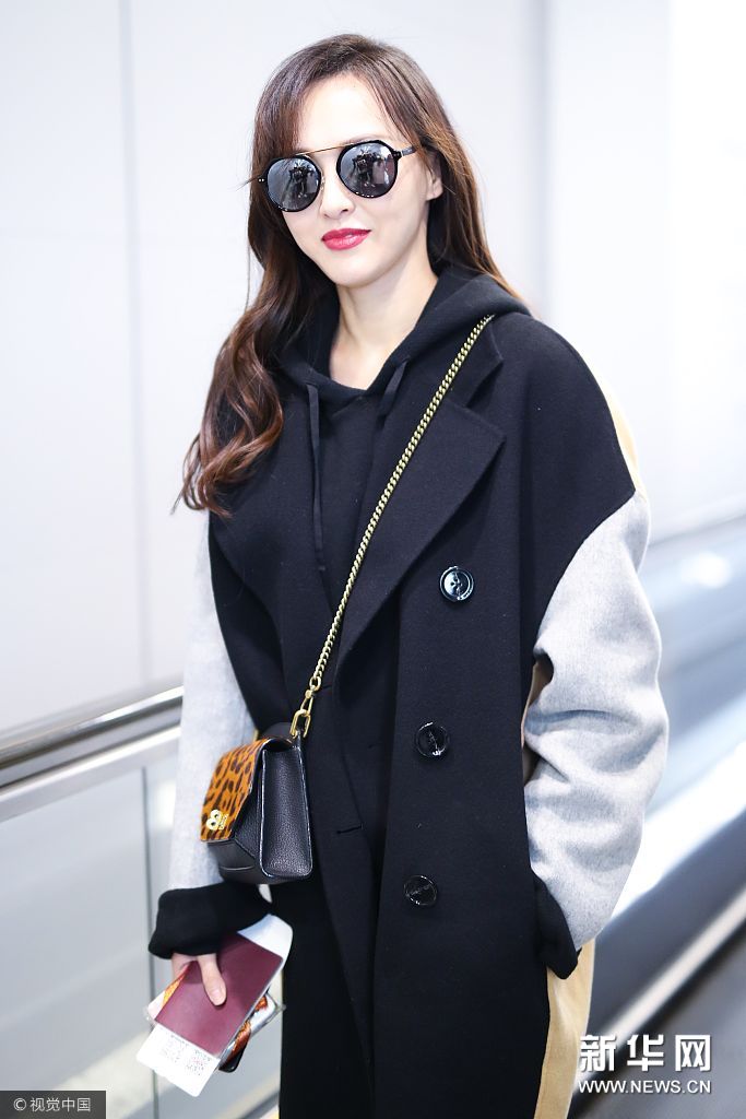 唐嫣现身上海机场,拼接大衣架黑超,霸道姿态上线。