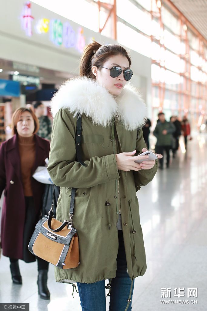 2017年12月14日,何穗现身机场,手插口袋御寒戴白色羽绒帽喜感足。