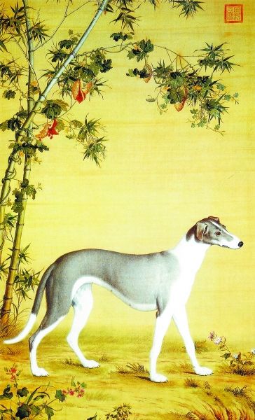 自宋代始花鸟画获得空前发展,皇家画院极盛,追求精工写实,动物画这时得以独立出来,单独的犬画开始出现,现藏于北京故宫的宋李迪《猎犬图》即是一幅不可多得的作品。他画的《猎犬图》造型比例精确,明暗层次清晰,立体感极强,犬的神态与动态尤其传神,将猎犬盯视前方漫步而行的感觉刻画得入木三分,堪称形神俱佳之作。可以看出画家不仅具有高超的绘画表现技巧,对狗的生活习性也有很深的了解,该作品体现了宋代画家的非凡写实功力与水平。“南宋四家”之一的刘松年曾画过一幅风俗画《补纳图》,画中一老僧正在专注穿针引线补缀,床榻前一小狗席地而卧,似仰头目视主人,小狗的刻画堪称神来之笔,寥寥几笔勾勒,狗便活脱而出。