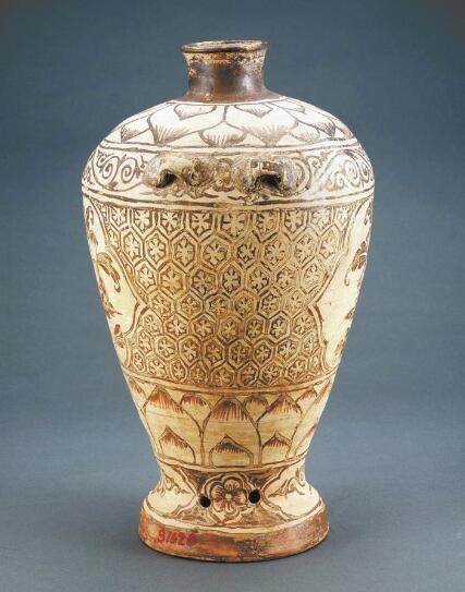 深圳出土的元褐彩牡丹纹双系小口陶瓶和东汉“九九乘法口诀”刻文陶砖。