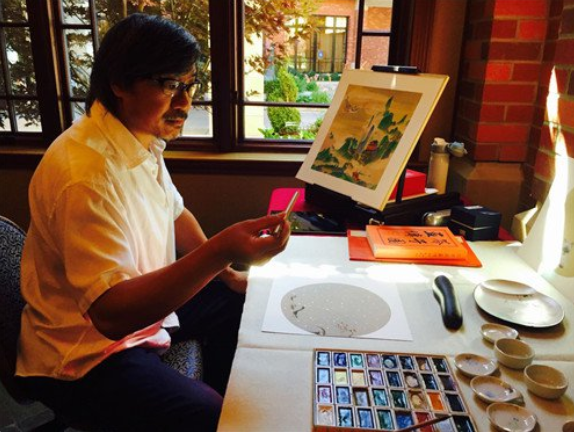 笠夫生于书香家庭,幼年即热爱艺术,青少年时期受到著名鉴赏家杨仁恺先生的指点。十几年前笠夫是深圳著名的电视人,留学日本,游学央美。后来转行,专习绘画,闭门刻苦。2014年,笠夫的水墨《荷衣落元古池》就在保利秋拍会上以12万元成交。之后,他远赴加拿大,开启了国际化的艺术之路。