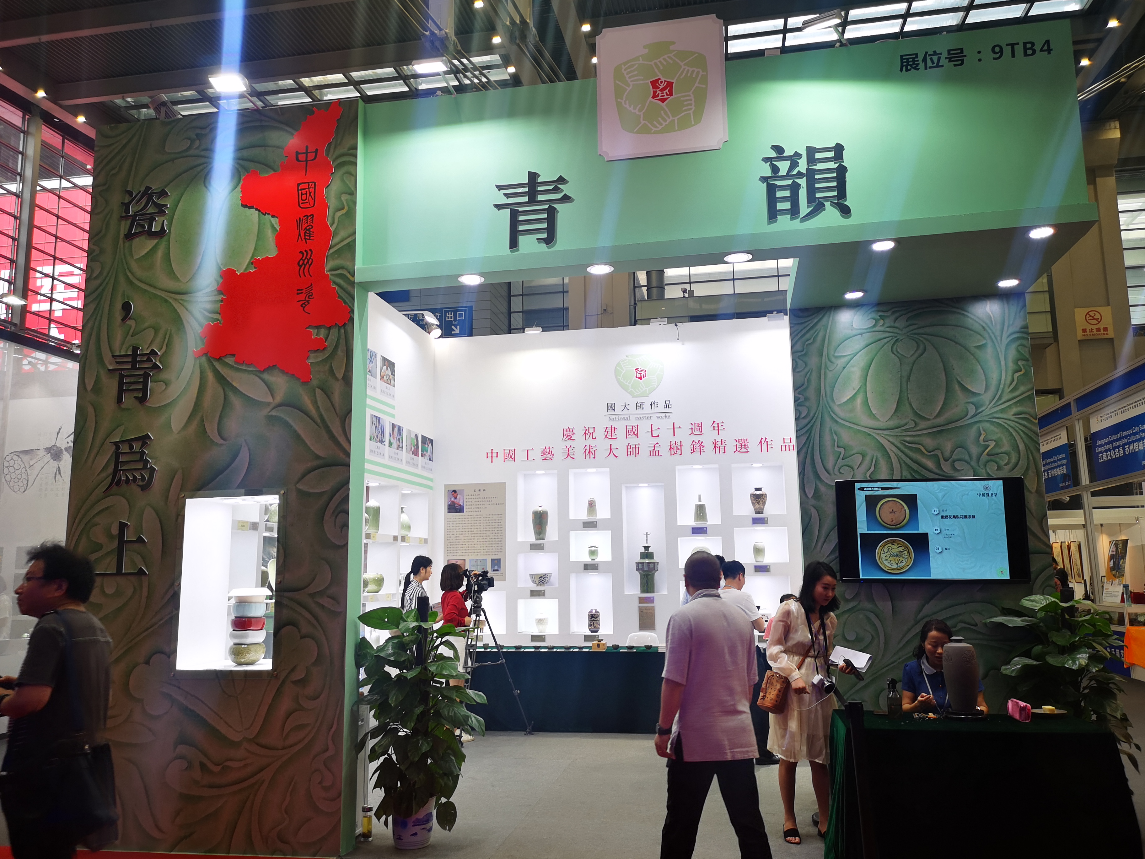 据介绍,今年工艺美术馆的参展作品专业化程度大幅提升。到场的国家级、省市级工艺美术大师,“非遗”项目代表性传承人、行业和技艺领军人物共计42人,相较去年明显增多。这其中,由首届国家级非物质文化遗产代表性传承人、中国工艺美术大师孟树锋先生领衔制作的耀州窑青瓷作品,凭借其晶莹纯净的釉色,古朴庄重的造型闪耀文博会现场,吸引了在场观众的目光,赢得了大家的一致好评。