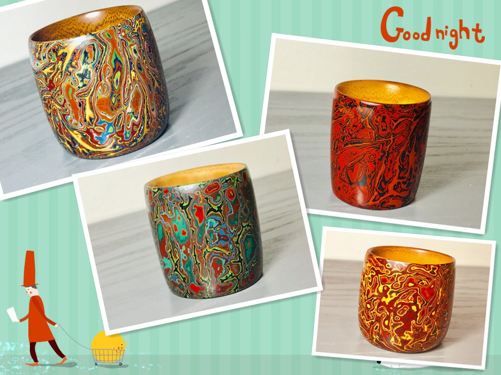 浙江省组团的展位在会展中心2号馆,规模不小,罗献兵老师的漆艺作品都比较精致,但展位却比较舒展。一眼望去,五彩斑斓的漆艺作品令人眼花缭乱,精神为之一震,主要作品有犀皮漆扇、印盒、糖果盒、竹胎茶杯、腰坠以及手串和漆珠等。前来参观的人不少,但从他们的言谈中得知了解的并不多,多为其绚丽的光彩所吸引。