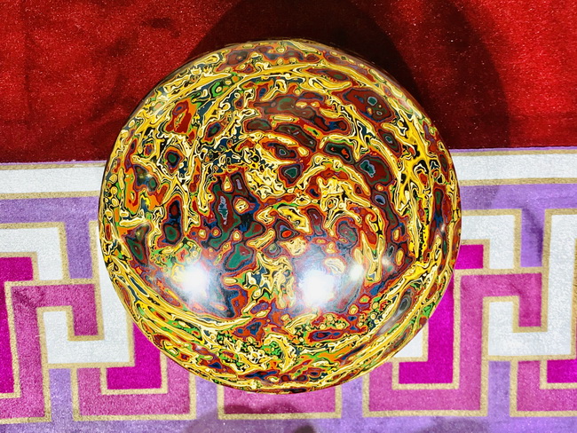 罗献兵老师说,在进行犀皮漆创作的时候,总是思绪纵横,自然,生命,人生,河流、山川无不融入脑海,激荡、滋养着漆艺的变化与创新。他在层层浸染中感悟漆艺之美,在遍遍涂髹中探寻愉悦人生。长时间的磨励与实践,博采众长,师法自然,创作了一批唯美大气、独具匠心的漆艺作品,有些可谓是巧夺天工、天人合一的艺术品。他说,“犀皮艺术,是关于心灵的艺术,是关于人与自然关系的艺术,是关于灵魂的艺术。这在当代中国是缺失的。我希望通过漆树汁这个比较独特的自然材料,给人们提供一种思维的观念,通过天然漆树汁材料的运用,给人们提供一种认识自然的角度。”正所谓:梅花香自苦寒来,功夫不负有人心。渐渐地,罗献兵的名气和犀皮漆品也从小小的临海遍及神州大地,以至于世界华人文化圈。