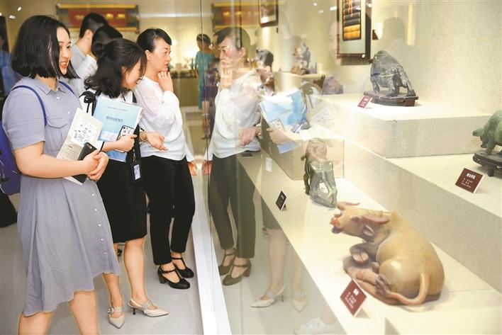 牛雕、牛绣、牛画……厉有为无偿捐赠的1400余件牛艺术品来自不同的国家和地区,形成于不同的历史时期,包括玉石、金属、陶瓷、竹木、刺绣、剪纸、书画等各种材质和工艺,具有重要的历史文化价值和深刻的精神内涵。比如,有一尊战国铜牛的收藏品,造型生动、设计精巧、工艺考究,牛脖子上雕刻的是长冠凤图案,牛背上雕刻的是太阳图案,牛身上是龙凤纹。