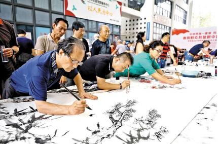 宝安日报2019年9月19日讯 9月18日下午,以“中华民族一家亲,同心共筑中国梦——各族群众共贺新中国成立70周年”为主题的书画艺术笔会在龙华文化艺术中心举行,80多位书画名家现场挥毫,尽展中华民族文化艺术瑰宝魅力。