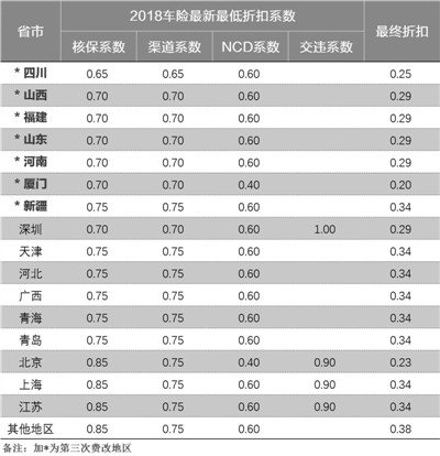 事实上,2015年保监会启动商业车险条款费率管理制度改革试点工作,业内将其定义为商业车险第一次费改,自主核保系数和自主渠道系数调整范围不断扩大。在第三次费改前,多数地区车险最低折扣率已下调至0.3825(约3.8折),有些地方甚至可达0.3375(约3.4折)。
