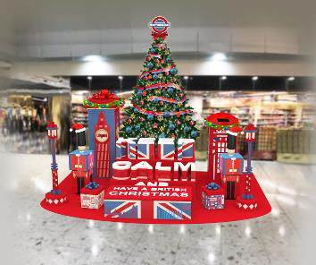 此外,高空俯瞰商场地库1楼的圣诞装置,会见到英国街头到处可见的Keep Calm标语,而从正面看去更会惊喜发现英国国旗,配合经典红色电话亭圣诞场景,必定成为大家打卡签到的热点。