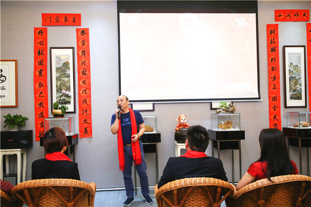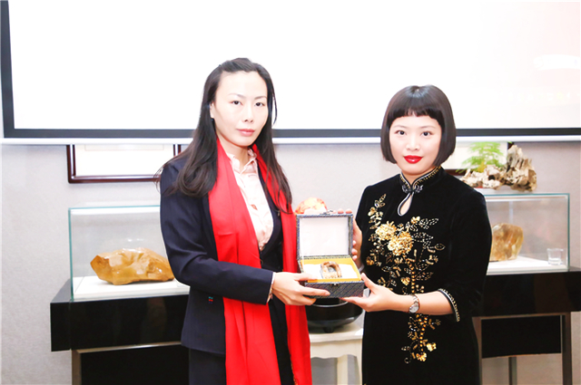 自古书法印章不分家,作品必须盖印才算完整。本次活动场地提供田黄博物馆、希雍天石董事长缪建生为到场嘉宾和校友,受邀分享田黄石科普知识,介绍历经1.8亿万年形成的田黄石种类及特点。  欢聚活动上,田黄博物馆特别挑选了一枚“温、润、细、腻、凝、洁” 、印面方正硕大,双龙雕刻立体,栩栩如生的昌化田黄贯斗双龙印玺,捐赠给文学社。 收到如此珍贵的礼物,求是文学社秘书长楼蓉表示:非常感谢田黄博物馆的支持与厚礼,后期将委托机构对这块印石义拍或义卖,所得将以求是文学社和田黄博物馆名义,捐赠给公益项目,会让这一珍贵的礼物,发挥更多的社会价值。