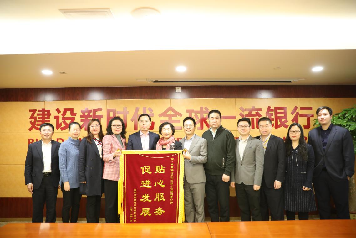 会后,深圳市物流与供应链管理协会秘书长郑艳玲女士代表会员企业向深圳中行赠与了“贴心服务、促进发展”锦旗,对深圳中行近年来对促进供应链金融行业发展、服务中小微民营企业作出的贡献表示感谢,对中国银行全方位的金融服务给予了高度认可。