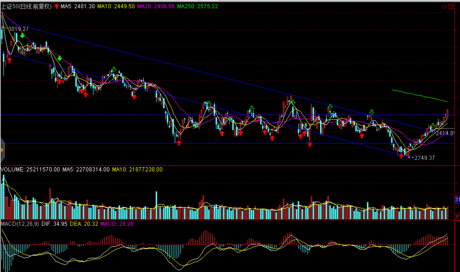 技术面:短期维持上行趋势,上证50年线短期目标、沪综指站稳半年线后挑战2700点一线、创业板短期压力1350点一线。