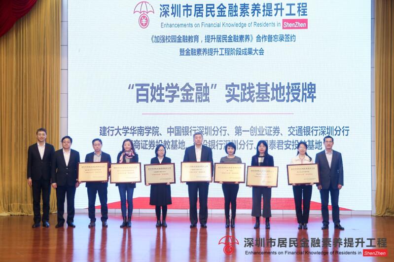 在随后的授牌、授证仪式中,深圳交行作为青少年和居民进行金融实践的合作机构,被授予了“百姓学金融”实践基地和“爱心支持单位”荣誉称号。