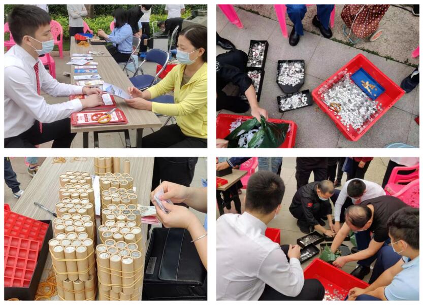 3至4月期间,深圳分行走进水榭花都和华海澜湾小区,开展“硬币兑换进社区”公益活动,并向社区居民宣传“3.15金融消费者权益”、人民币图样使用等金融知识。从2017年开始,深圳分行累计开展“硬币兑换进社区”活动近50次,回收硬币超过100万枚,彻底解决居民硬币积压的老大难问题,是“一切人民为中心”、“急人民之所急,想人民之所想”的集中体现。
