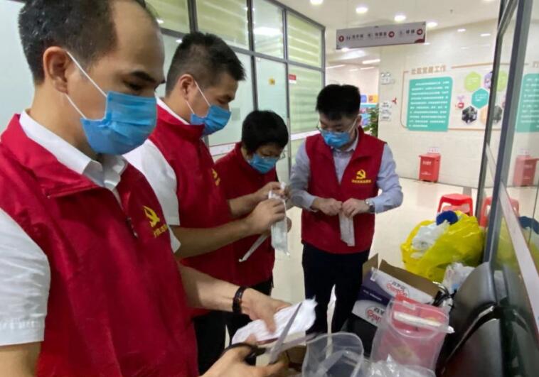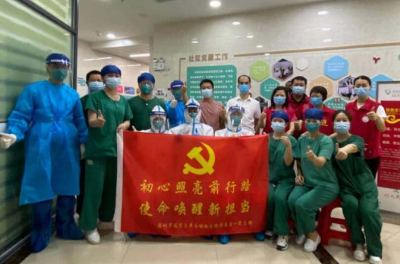 6月初,在了解到辖内核酸检测点面临医护人员、志愿者人手紧张的情况后,深圳农商行龙城支行积极响应号召,在支行行长带领下,组织青年员工参与吉祥社区防疫工作。各青年员工积极参与现场秩序维护与物资搬运,更有两名青年党员同志穿上防护服,发挥党员带头作用,在做好自身防护的情况下,在现场协助医生进行核酸检测。