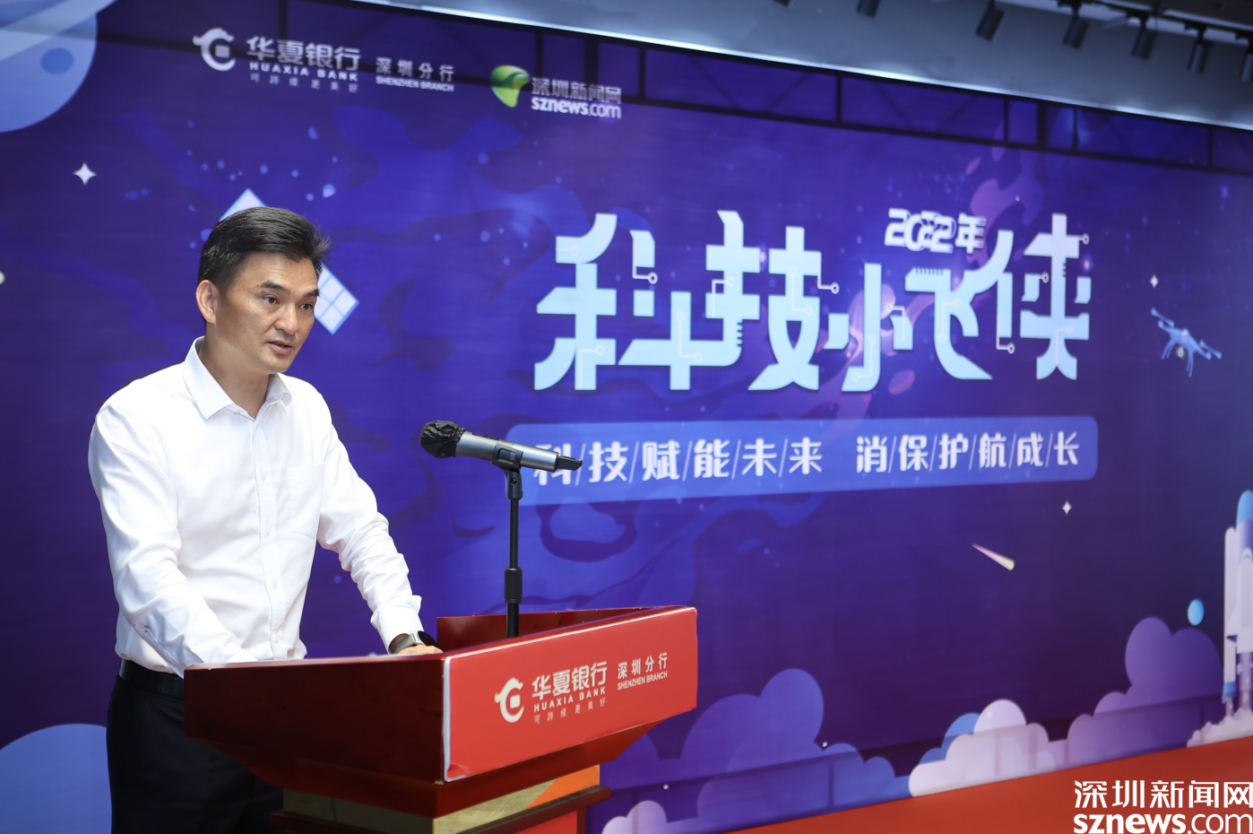 华夏银行深圳分行党委委员、副行长彭金运在“科技小飞侠”成长营开营仪式中致辞,表示华夏银行深圳分行一直以来以高度的社会责任感,扎实做好消费者权益保护,以更加创新的举措深化金融知识普及,以饱含深情的努力守护客户的钱袋子、守住消费者的信任和托付。