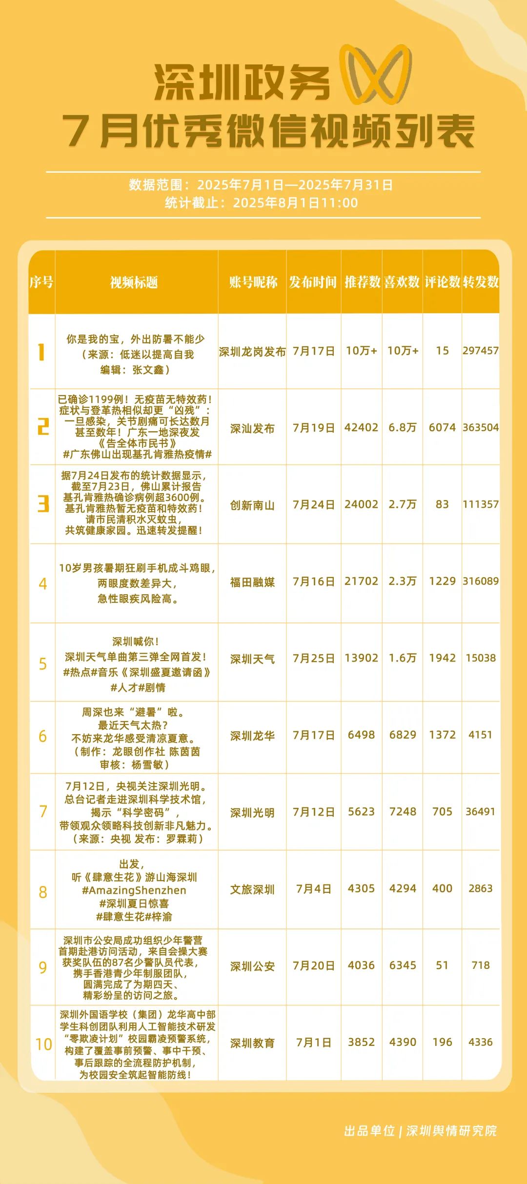 四、7月深圳优秀政务新媒体账号