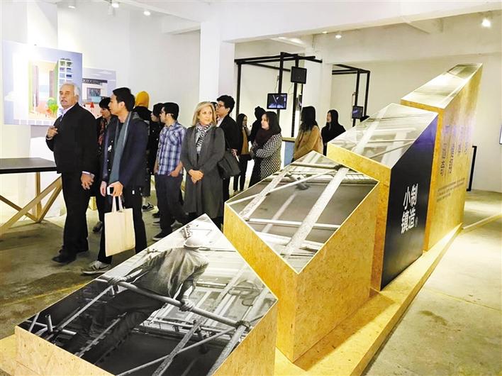 记者在现场看到,整个建筑由中国设计和当代设计两大主题馆立体互相扣合而成,地面设计为全开放空间,可连接小镇大街,下沉式庭院,亦可为不同活动或展览提供空间,打造为区域中的艺术核心文化广场。