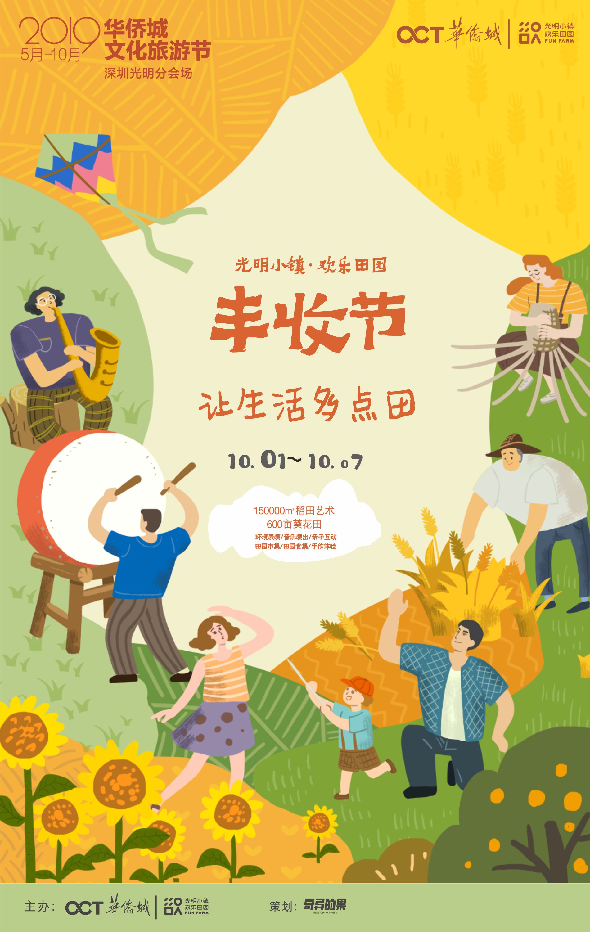 华侨城光明小镇•欢乐田园“丰收节”,以丰收的喜悦,邀广大游客共同庆祝中华人民共和国成立70周年。作为华侨城集团生态农旅名片,华侨城光明小镇•欢乐田园将依托独特的文化旅游产业优势,积极探索发达城市周边生态农业发展新路径,高效推进农业、文化和旅游业深度融合,为建设中国特色社会主义先行示范区贡献力量。