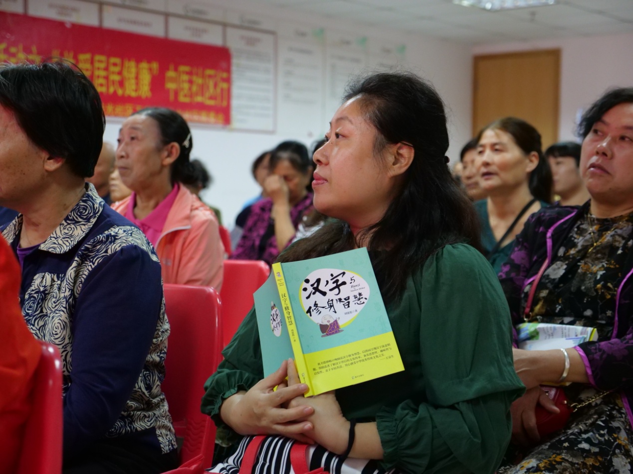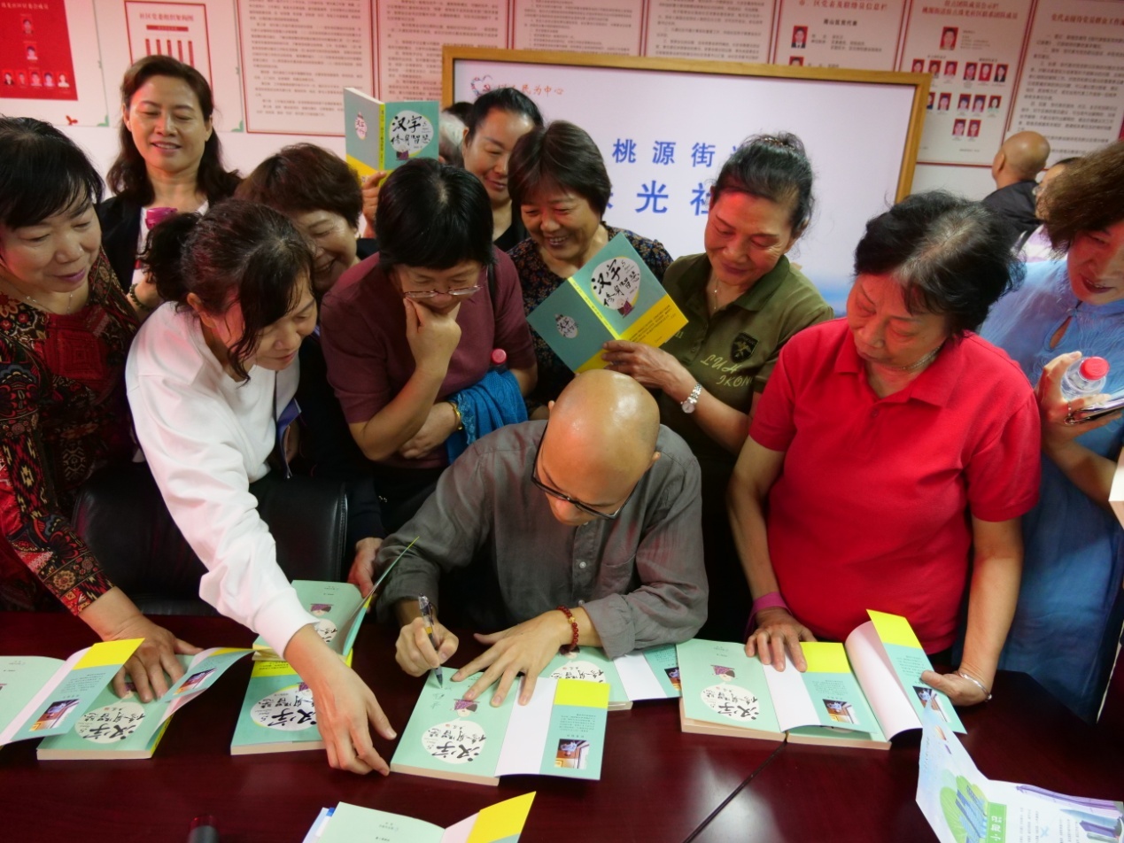 讲座结束之后,社区居民纷纷拿起手中的创建文明城市学习读本《汉字与修身智慧》要求刘建彪老师签名,“这是一本很棒的美德教育亲子读物,回去和孙子认真品读每个汉字,借助优秀传统文化不断提升个人的文明素养。”住在宝珠花园的退休老师丁阿姨说。 (通讯员:杨婷姻 摄影:田正中)