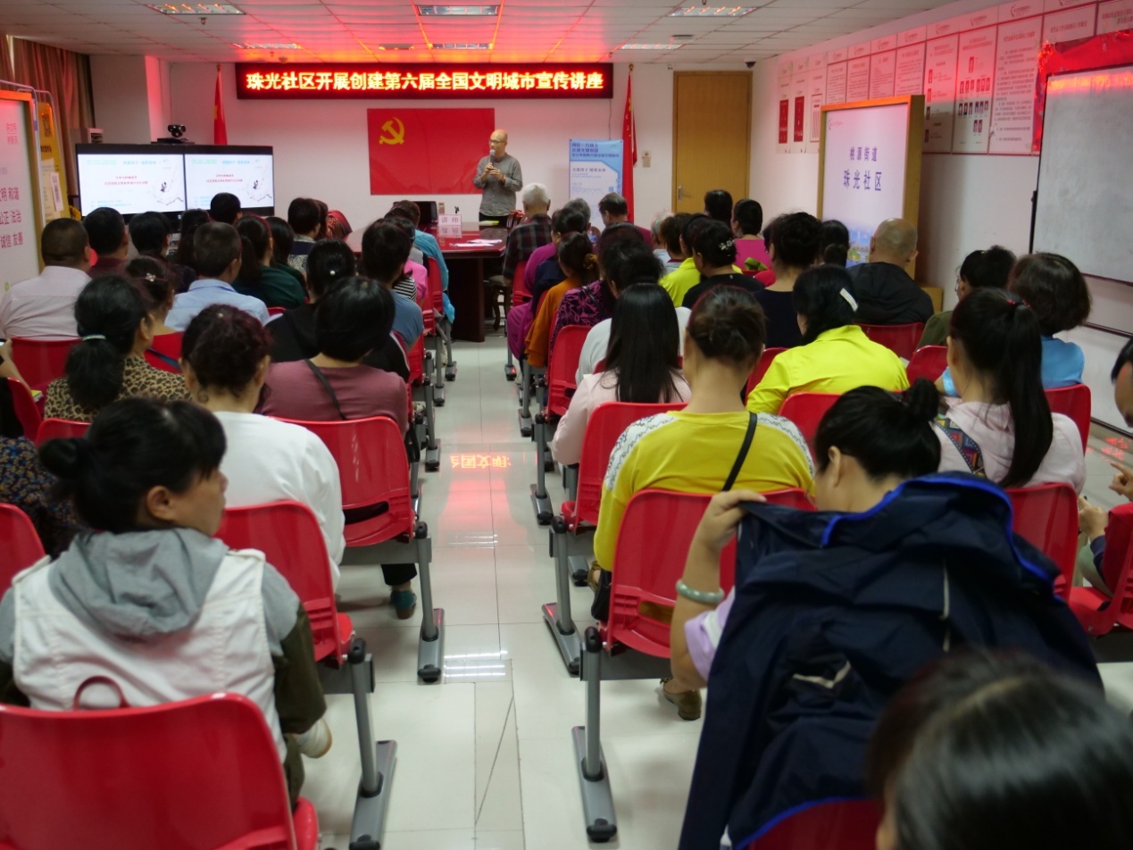 最后,刘建彪老师高度表扬了珠光社区居民认真专注的听讲态度,他指出,尊师好学也是“文明”的体现,并由衷感谢珠光社区党委对本次活动的有序组织与安排,赞扬他们对城市文明创建工作的重视与支持。
