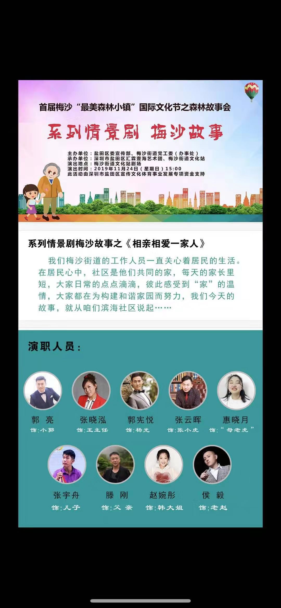 11月24日,由深圳市盐田区委宣传部、梅沙街道党工委(办事处)主办,深圳市盐田区汇霖壹海艺术团、梅沙街道文化站承办,深圳市盐田区宣传文化体育事业发展专项资金支持的首届梅沙“最美森林小镇”国际文化节之森林故事会在梅沙街道文化站剧场拉开了帷幕。