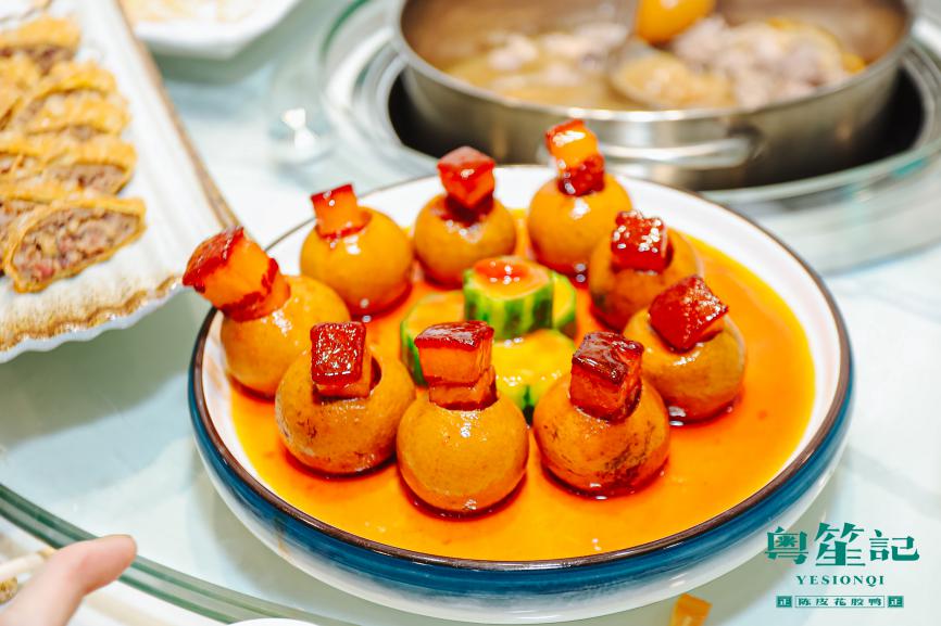 粤笙记陈皮菜式种类丰富且菜式新颖,除了“新会陈皮花胶鸭”之外,入口即化却不腻口“新会柑橘红烧肉”、外脆里嫩的“红烧陈皮乳鸽”、酥香味美的“匠心陈皮骨”、开胃甜蜜的“陈皮番茄”,还有小时候的回忆“陈皮钵仔糕”,这些特色陈皮菜肴都不容错过。
