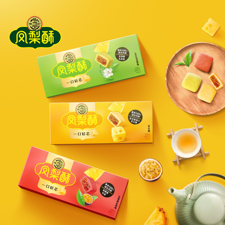 不管是徐福记的经典凤梨酥,还是新品一口轻芯凤梨酥(一口酥),都一直追求产品的优质品质和风味。徐福记新品一口酥跨界“新潮口味”,有清香玉兰乌龙茶味、醇香百香果红茶味、浓郁芝士口味3种新口味。果肉100%源自凤梨,保留果肉纤维,搭配酥香外皮,多层次丰富口感,满足挑剔的味蕾,精致造型,小巧份量,下午茶、加班充饥、欢聚时刻、外出旅游都可以轻松享受。
