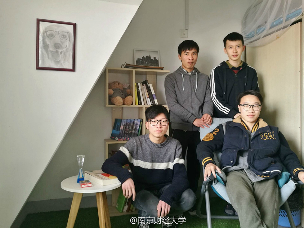 “这四个孩子风格迥异,学习成绩也都很好,比如刘以康,绩点4.0,是个超级学霸;廉镇宇平时爱摄影,很活跃……”南京财经大学外国语学院党委副书记李慕原笑着介绍,早有耳闻他们宿舍很文艺,今天见到果然名不虚传,“男生宿舍搞得这么美,我自己都觉得很有意思,不少女孩子看了图片也惊叹说要来好好借鉴。”