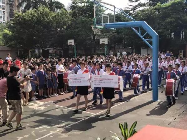 深圳新闻网讯 2018年6月28日,在市关爱办的指导下,富德生命人寿走进来深建设者子女集中的龙岗中兴小学开展公益活动。深圳关爱办副主任华荣、富德生命人寿深圳分公司总经理谢刚、深圳市保险同业公会副秘书长文宝飞、深圳龙岗中兴小学校长邹元涛、富德生命人寿总公司客户服务部VIP服务处李悦女士等相关领导及全校约1000名师生共同参与了本次公益活动的启动仪式。