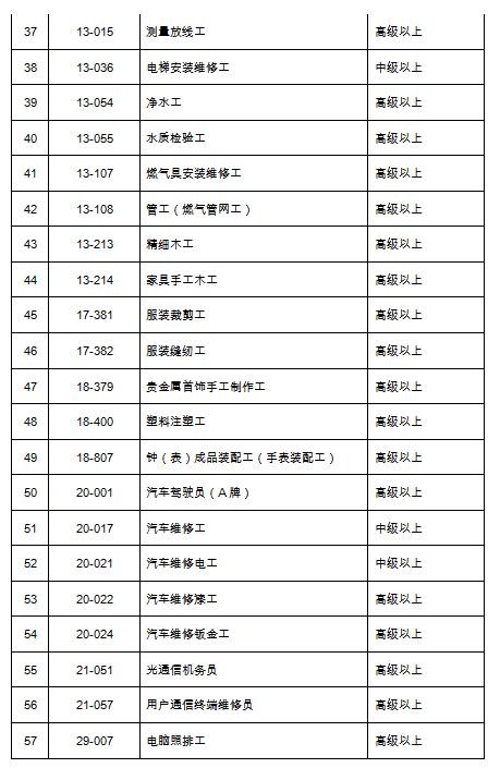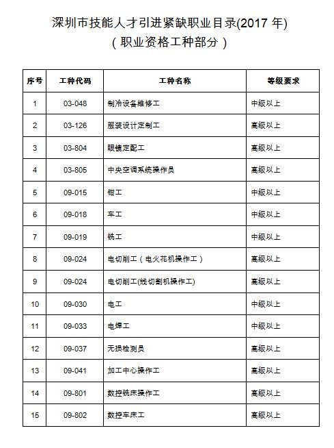 ②职业资格证书的工种符合《深圳市技能人才引进紧缺职业目录(2017)》。(见下表)