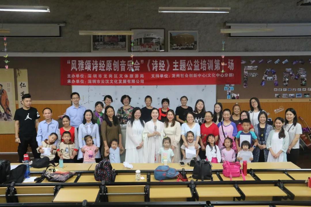 为弘扬优秀传统文化,带领更多人以不一样的方式学习传统经典,针对龙岗区外来务工人员,龙岗区特开展以《诗经》原创音乐为主题的公益培训课(10月-11月,共6次课),以达到诗词音乐普及教育,提升个人艺术素养,促进家庭幸福,提升外来务工人员及家庭对深圳对龙岗的认同感、归属感、幸福感。