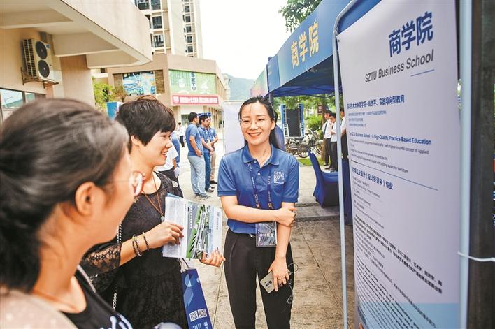 在商学院的招生咨询展位前,来自德国的教授戈尔达娜·基兰笑意盈盈地向学生和家长递上学院宣传册。戈尔达娜·基兰说,她被深圳这座城市的气质和深技大的办学模式吸引,今年3月加入学校成为一名全职教授。“在德国,应用技术大学都设有商学院,很高兴今年技术大学开设商学院,培养更多优秀的创新创业人才。”
