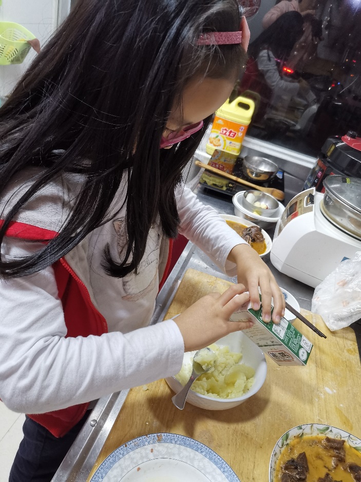 我们  经常给奶奶打下手,烹饪也是其乐无穷。茜茜最喜欢的是可以媲美橡皮泥的面食,捏来捏去很有趣,还可以尝试些喜欢的食物,土豆泥,曲奇,等等。