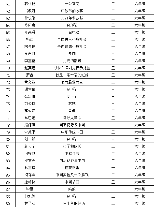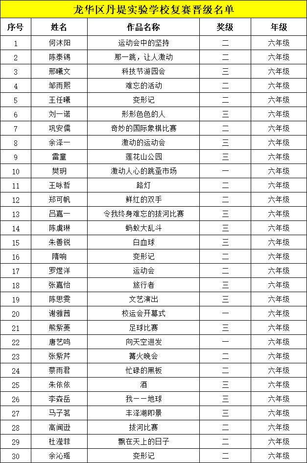 自2021年1月,活动征稿启动以来,获得了深圳市广大中小学生、教师、文学爱好者的热烈响应积极参与,吸引了深圳百余所学校的上万人关注报名。现公布龙华区丹堤实验学校晋级复赛名单如下: