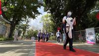 4月11日一早,深圳市宝安区标尚学校七到九年级的孩子们背着书包、戴好口罩,在值日行政老师及校医、保安的引导下,间隔排队,按序使用额温仪(测温门)进行体温测量后入校。