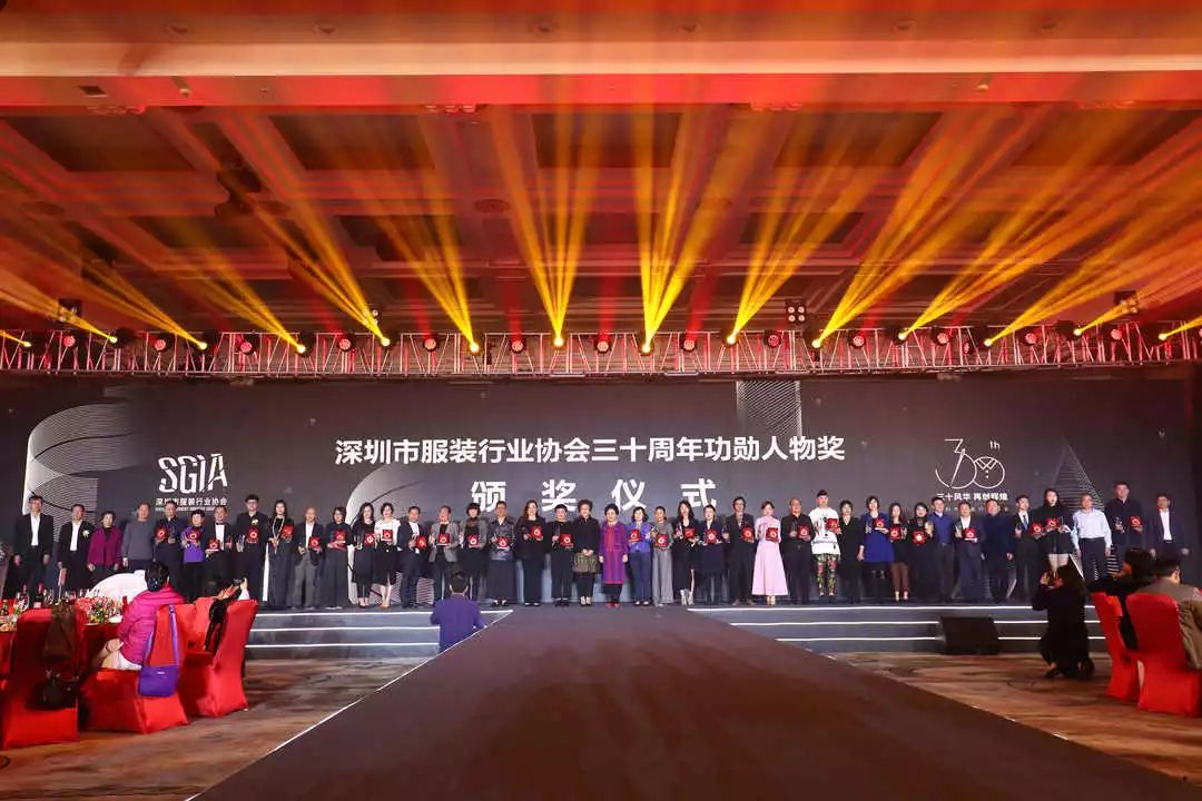 作为我国重要的时装设计制造和品牌基地,深圳见证了中国服装产业的飞速发展。在深圳市服装行业协会成立30年之际,由服装协会倡议并发起,联合深圳报业集团深圳晚报社、深圳网易、深圳ZAKER共同举办的“30年30人,深圳服装行业功勋人物”评选的颁奖典礼,在30周年庆典上举行。朱崇恽、俞淇纲、翟小平、夏国新、陈灵梅、吴穗平、严小华、杨帆、曾燕、吴洪、丁时照等来自服装行业各个领域和社会各界的30位上榜功勋人物走上舞台,获颁奖章和奖杯。