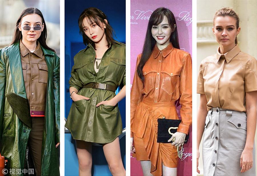 新华网2019年3月28 日讯 短暂的春天也要穿的时髦又有型,可是怎么穿都觉得自己缺点“飒”?没试过时装周潮人们团宠的皮衬衫当然时髦度锐减。不管是单穿还是叠搭,皮衬衫硬朗挺括的质地保管你潮爆全场!(图片来源:视觉中国)