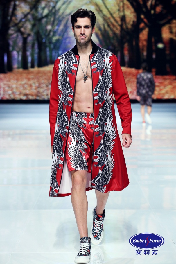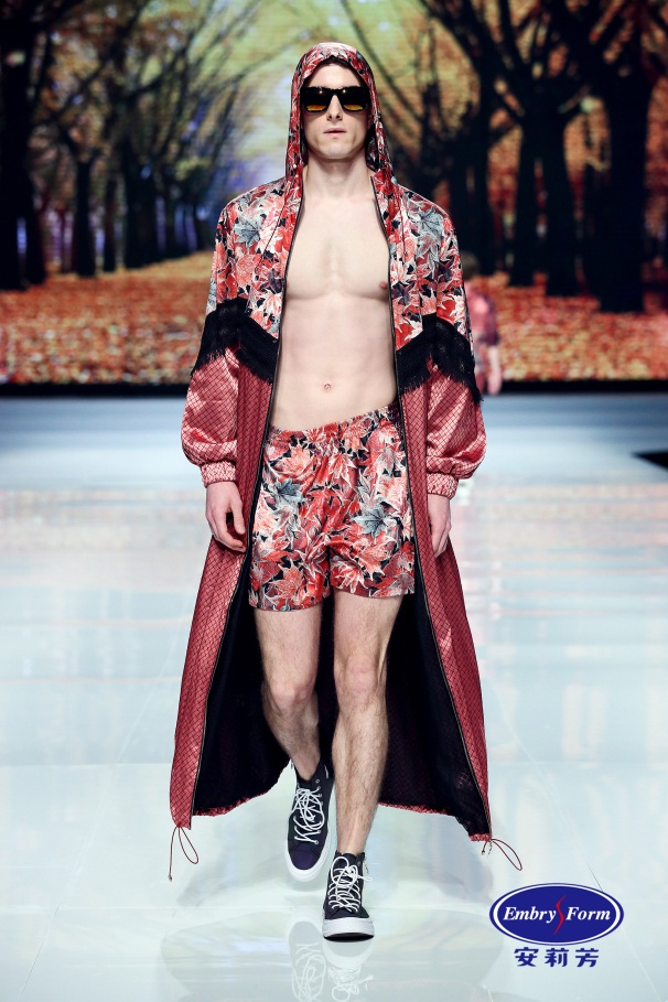 落叶知秋,梧桐叶的飘落预示着立秋的到来,从橙红到酒红的流行色将秋日里的舒缓宁静呈现出来,梧桐叶印花诗意诠释生命的静美与自信的力量。处暑时节,鹰乃祭鸟。凌厉展翅的雄鹰,勾画出一副极致刚劲的画面,色调间形成强烈的明暗对比,传递出男人的冒险天性。白露时节桂花飘香,极具国风韵味的桂花,写意泼洒在西方复古宫廷风款式之上,暗香浮动间呈现东方独有的儒雅诗意风格。