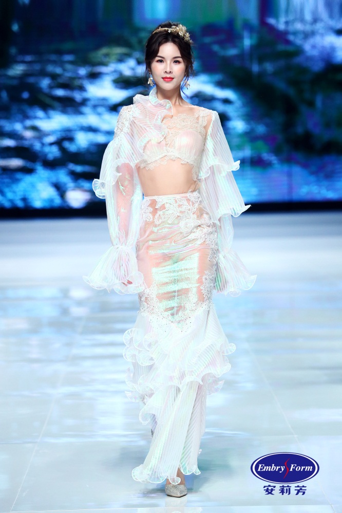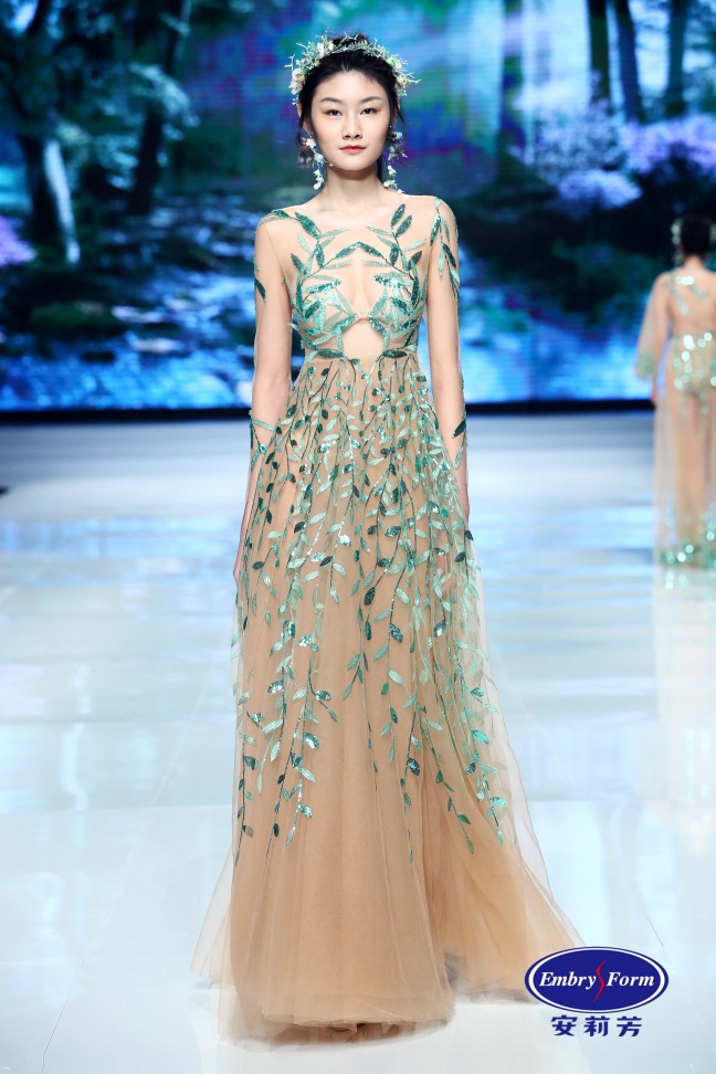 春水初生,春林初盛。安莉芳呈现了从万物复苏到繁花簇拥的春日花园,T台宛若花神走过,春意层层递进的浪漫情愫下,象征着Embry Form永恒优雅的主题。