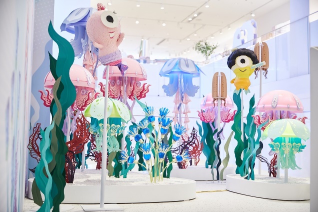 SUPIN+生活馆更联合新锐纸艺艺术家温绮雯女士,共同打造的海洋环保主题纸艺装置《乐活海洋》,现正在郑州SUPIN+生活馆展出,让消费者探索乐活的纸艺海洋。 《乐活海洋》主题纸艺装置选用FSC(森林管理委员会)认证环保纸材,回收塑料瓶重新创作一盏盏海葵灯;结合乐活速品集团 IP——乐活星人,一同探寻海洋世界的奥秘。希望借此提醒人们少用一次性塑料制品,减少塑料对海洋环境的污染,保护海洋生物。