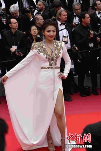 当地时间5月14日晚,著名演员巩俐亮相第72届戛纳电影节开幕式红毯。中新社记者李洋摄