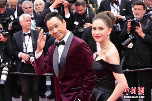 当地时间5月14日晚,知名演员王学圻、昆凌亮相第72届戛纳电影节开幕式红毯。中新社记者李洋摄