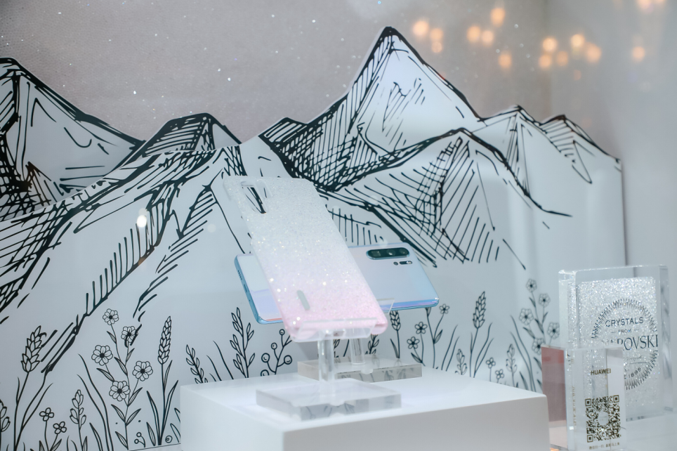 采用施华洛世奇元素的HUAWEI华为 P30 Pro限量礼盒(霞影纱·星钻保护壳)展示区